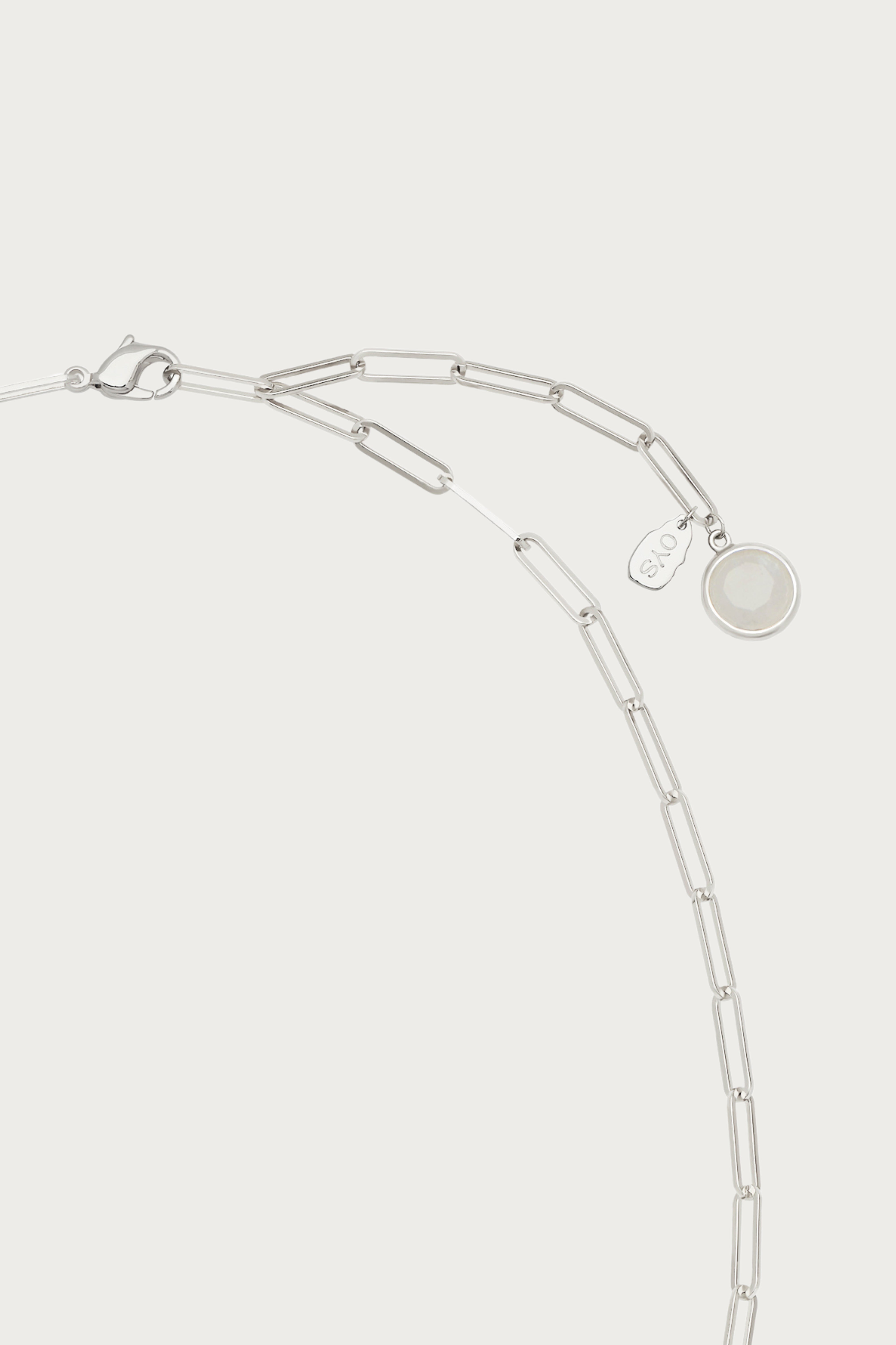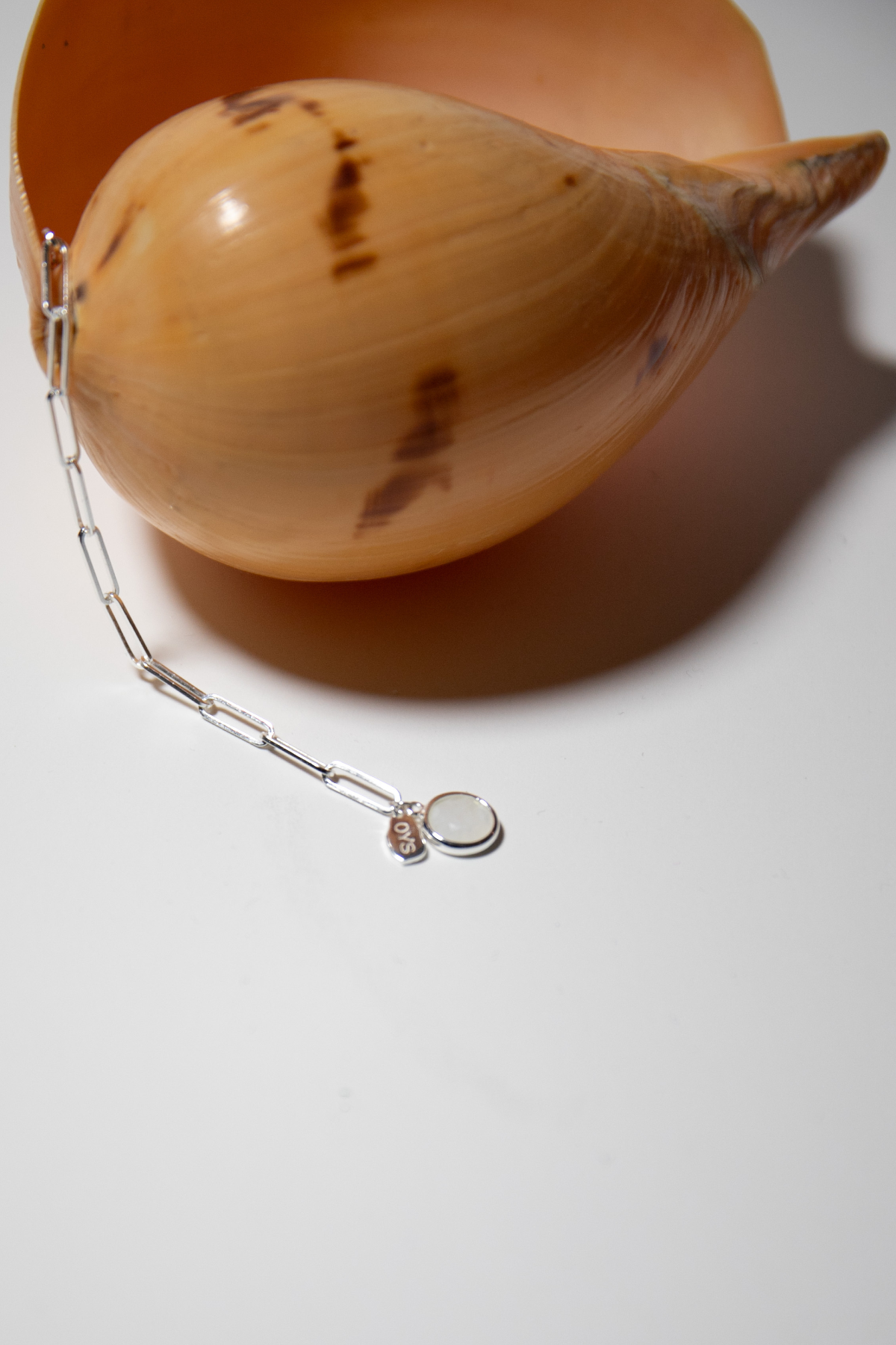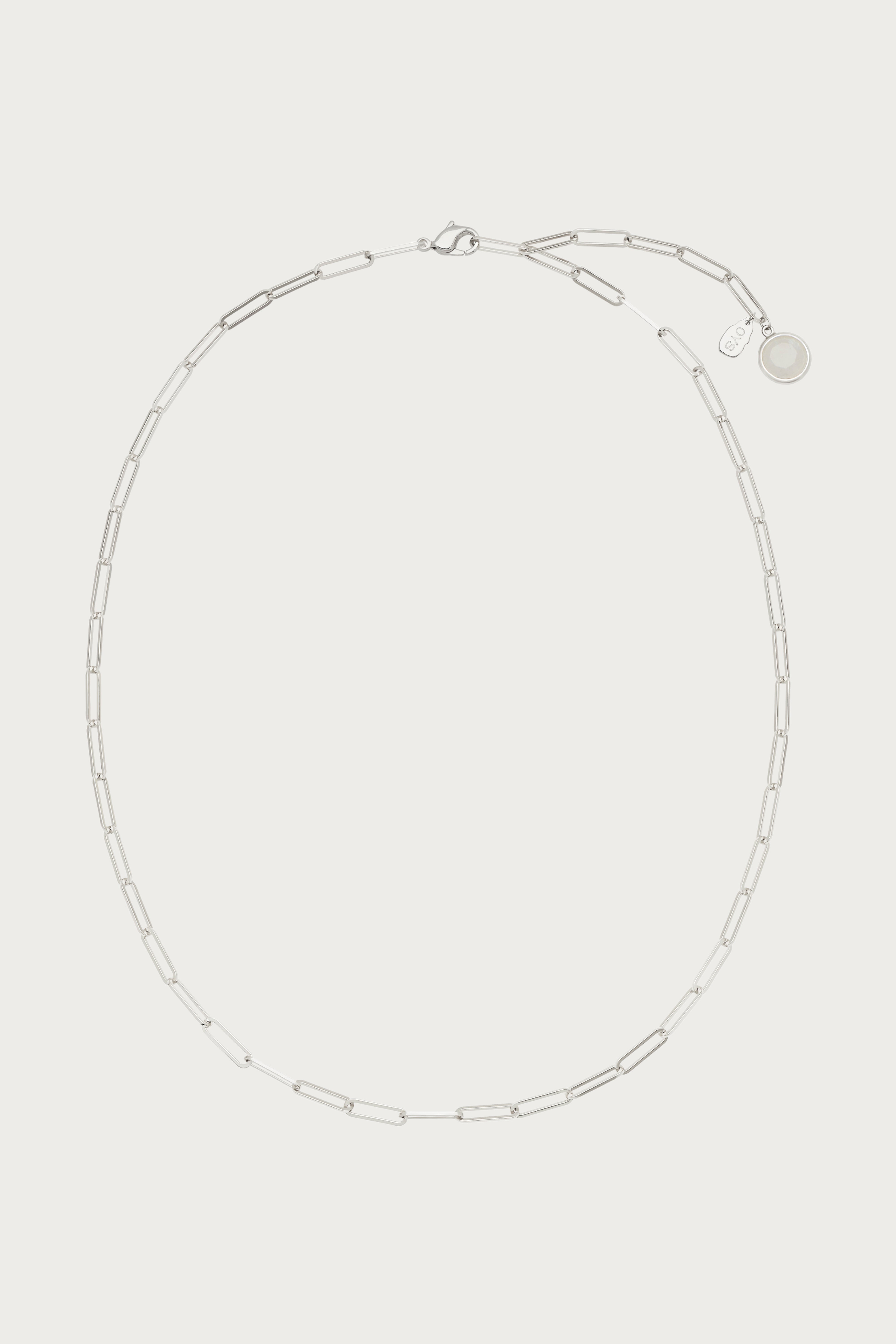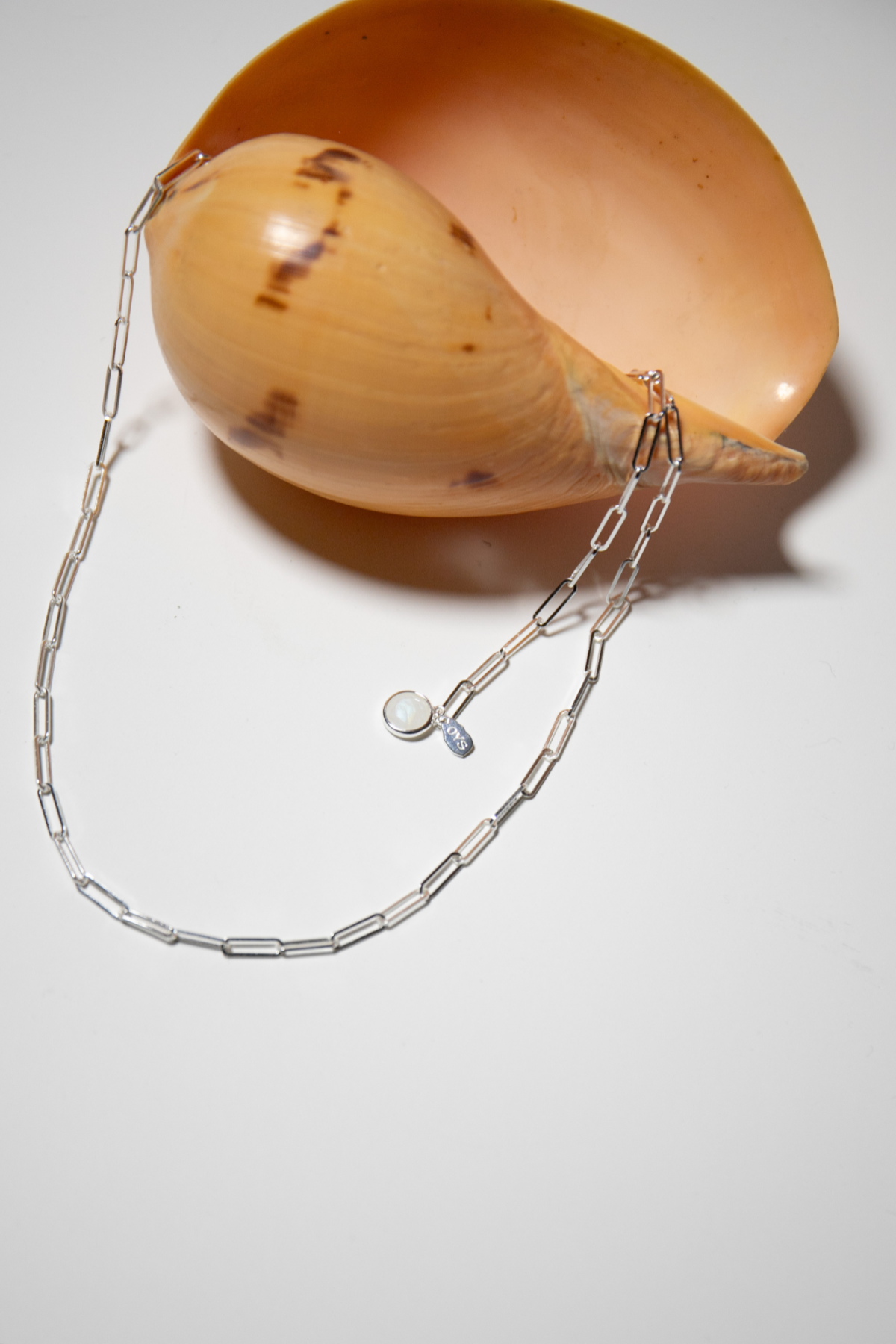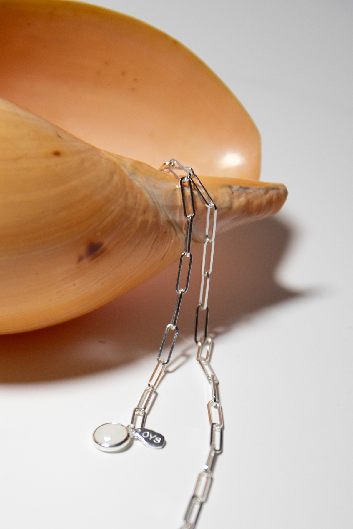 The Stone Chain Necklace Moonstone combines bold chain design with the ethereal beauty of moonstone. This striking piece features genuine moonstone stones set on a chunky silver chain, creating a perfect balance between edgy and elegant.